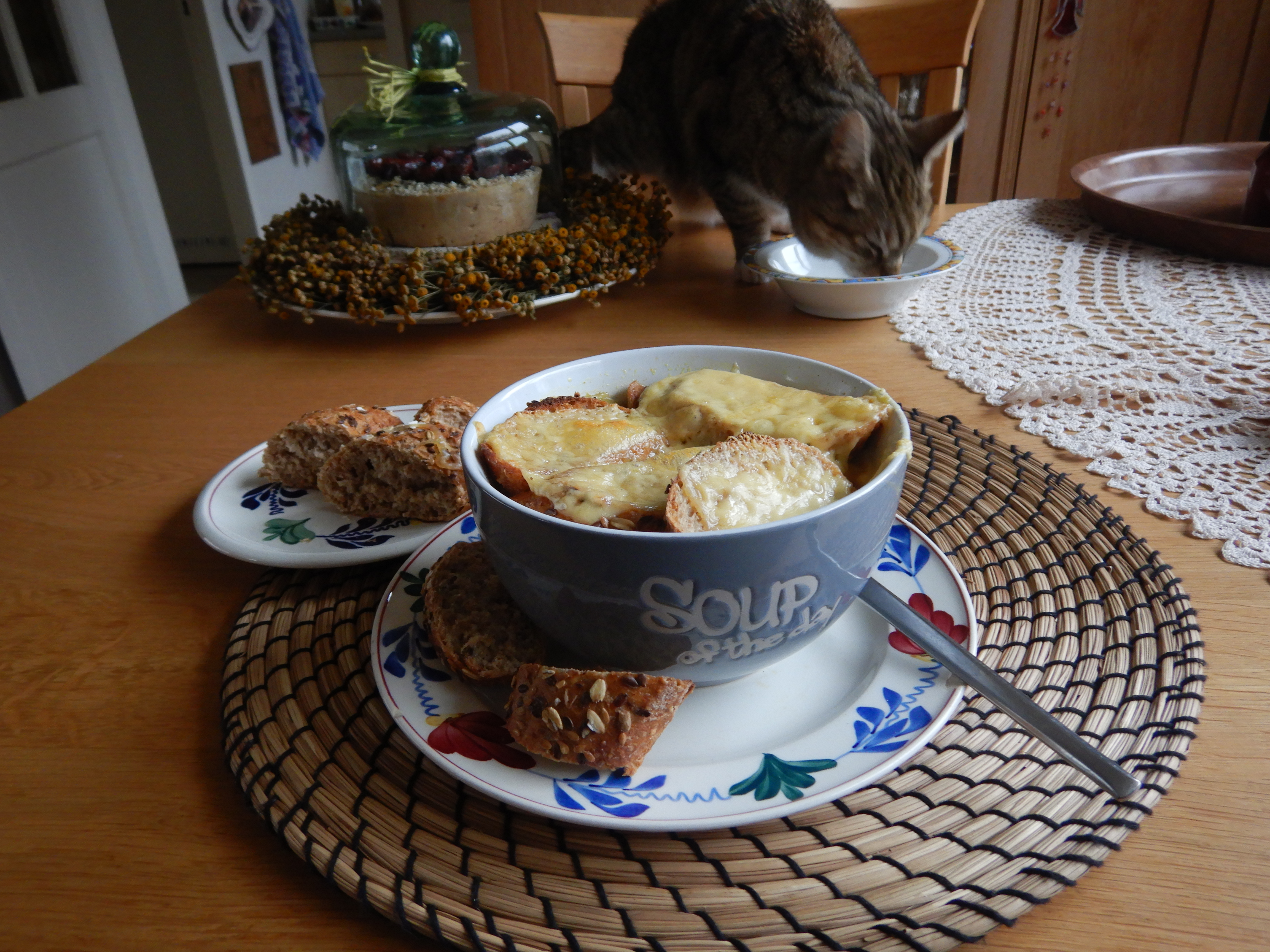 soepkop gelegd met een schijfje kaas erop. Even in de oven…